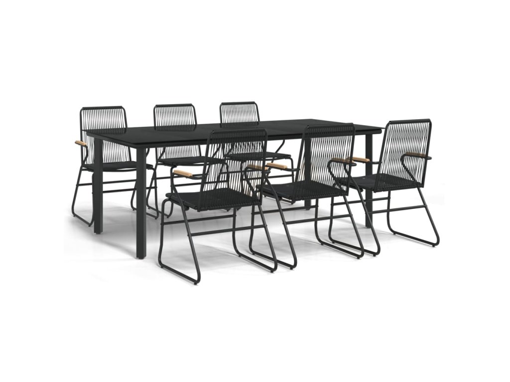 7dílný zahradní jídelní set černý PVC ratan 3099213