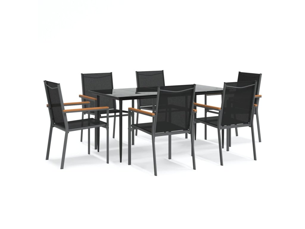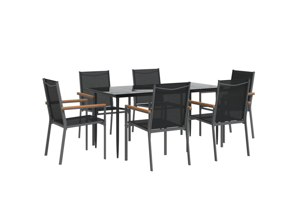 7dílný zahradní jídelní set černý textilen a ocel 3187038