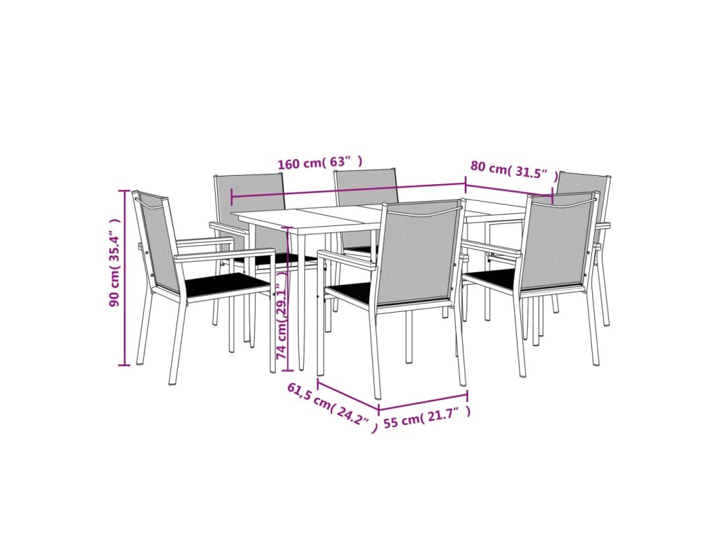 - Robustní a stabilní rám: Jelikož má ocelové rámy, je tento jídelní set robustní a stabilní pro každodenní venkovní použití.