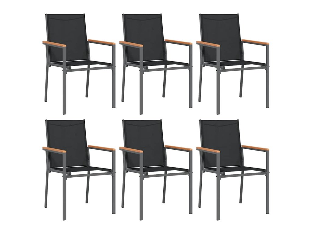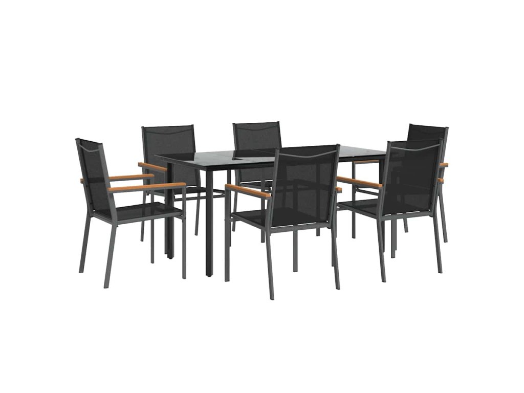7dílný zahradní jídelní set černý textilen a ocel 3187046