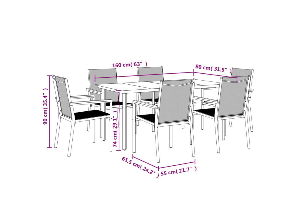 - Robustní a stabilní rám: Jelikož má ocelové rámy, je tento jídelní set robustní a stabilní pro každodenní venkovní použití.