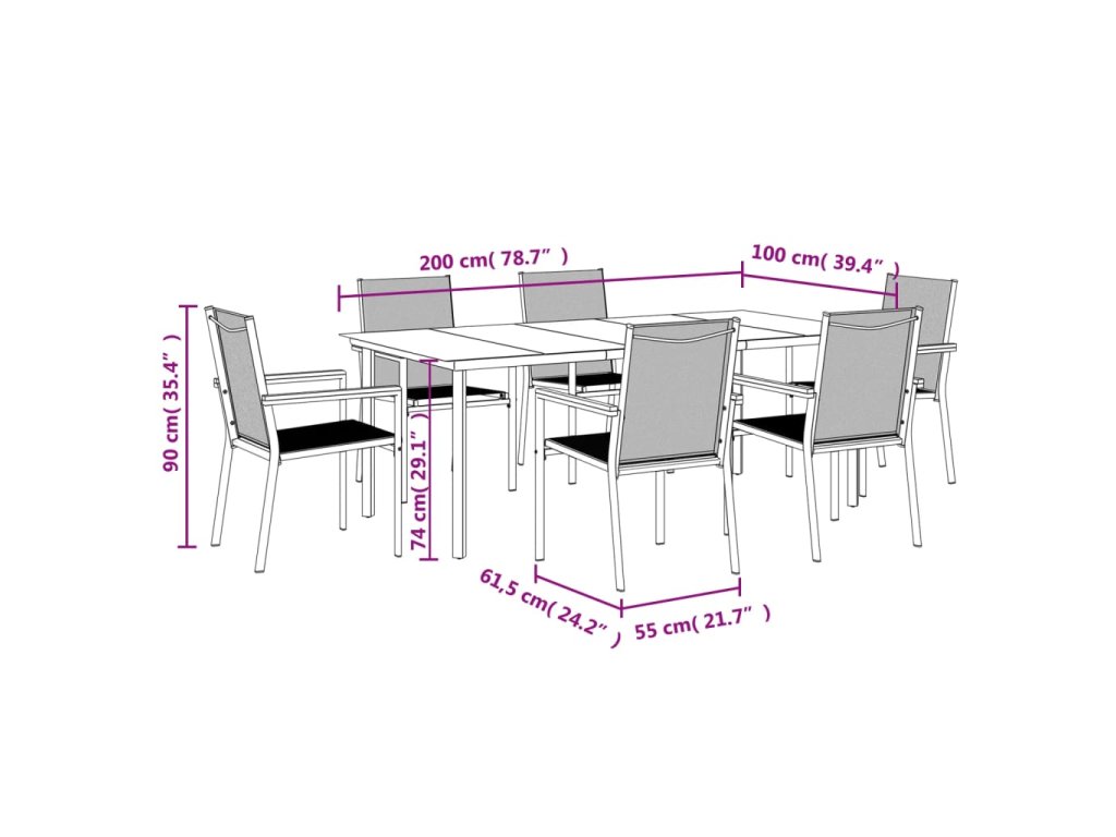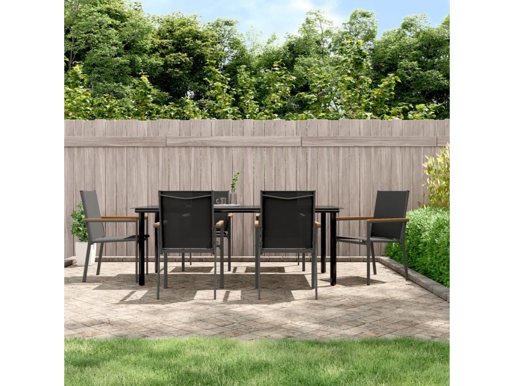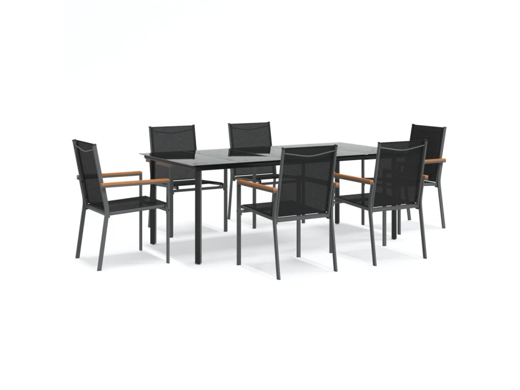 7dílný zahradní jídelní set černý textilen a ocel 3187047