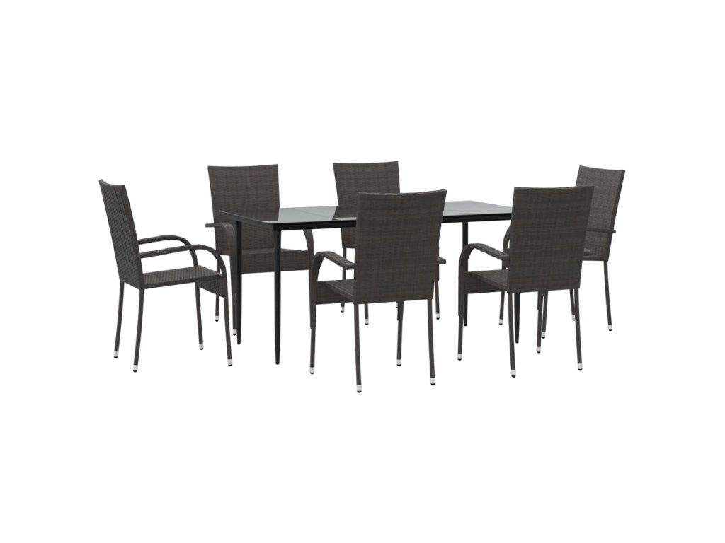 7dílný zahradní jídelní set hnědý polyratan 3156673