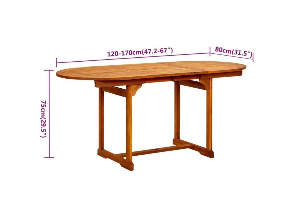 - Prvotřídní materiál: Zahradní jídelní set je vyrobený z masivní akácie, což je tropické tvrdé dřevo, které je odolné a výborně vzdoruje povětrnostním vlivům, takže vám vydrží sloužit po dlouhá léta. Olejovaný povrch se navíc snadno čistí vlhkým hadříkem.