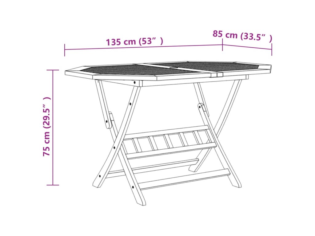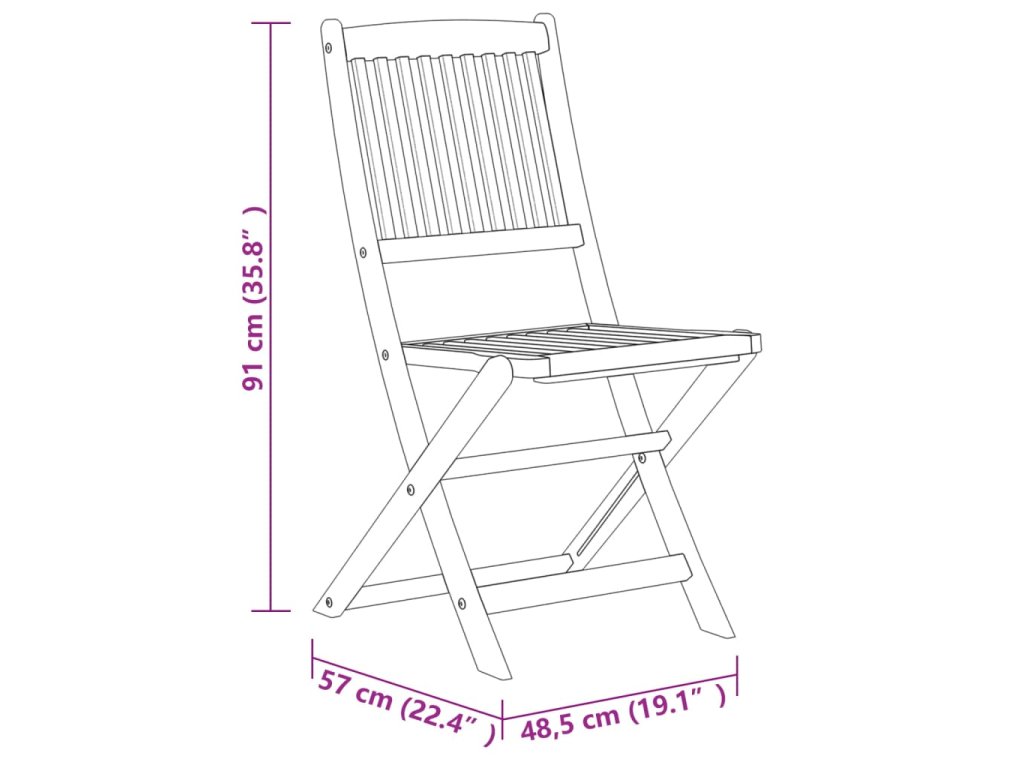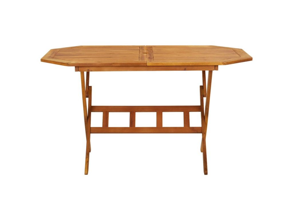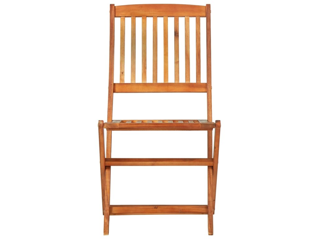 Venkovní jídelní set je vyrobený z masivní akácie, což je tropické tvrdé dřevo, které je odolné a výborně vzdoruje povětrnostním vlivům, takže vám vydrží sloužit po dlouhá léta. Olejovaný povrch se navíc snadno čistí vlhkým hadříkem. Pokud židle a stůl právě nepoužíváte, můžete je složit do kompaktní velikosti, aby vám zbytečně nepřekážely.