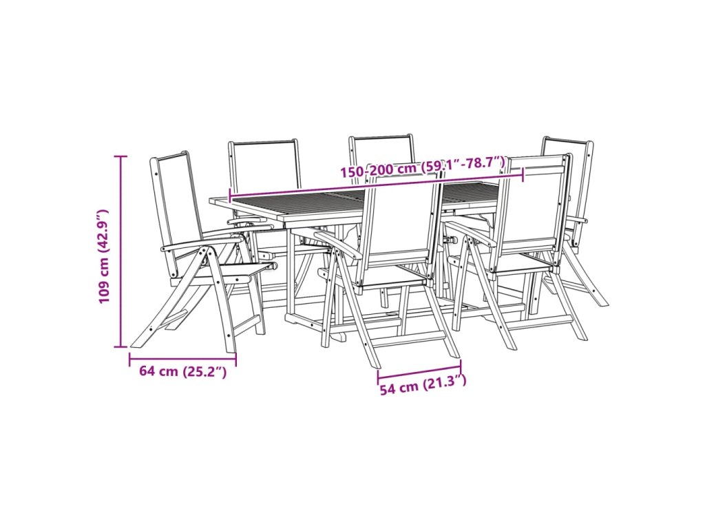 7dílný zahradní jídelní set masivní akáciové dřevo a textilen 3279303