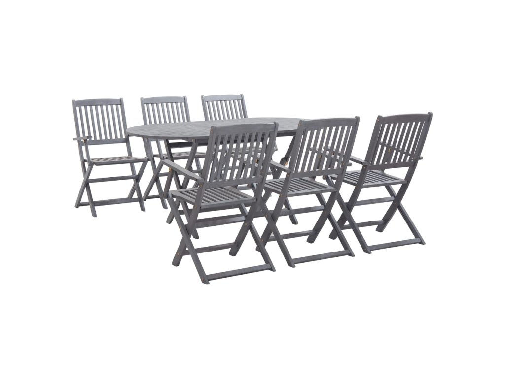 7dílný zahradní jídelní set masivní akáciové dřevo šedý 278923