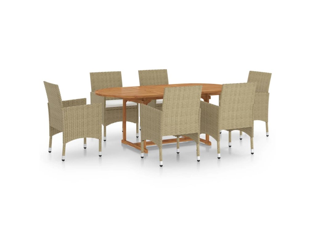 7dílný zahradní jídelní set polyratan béžový 3070753