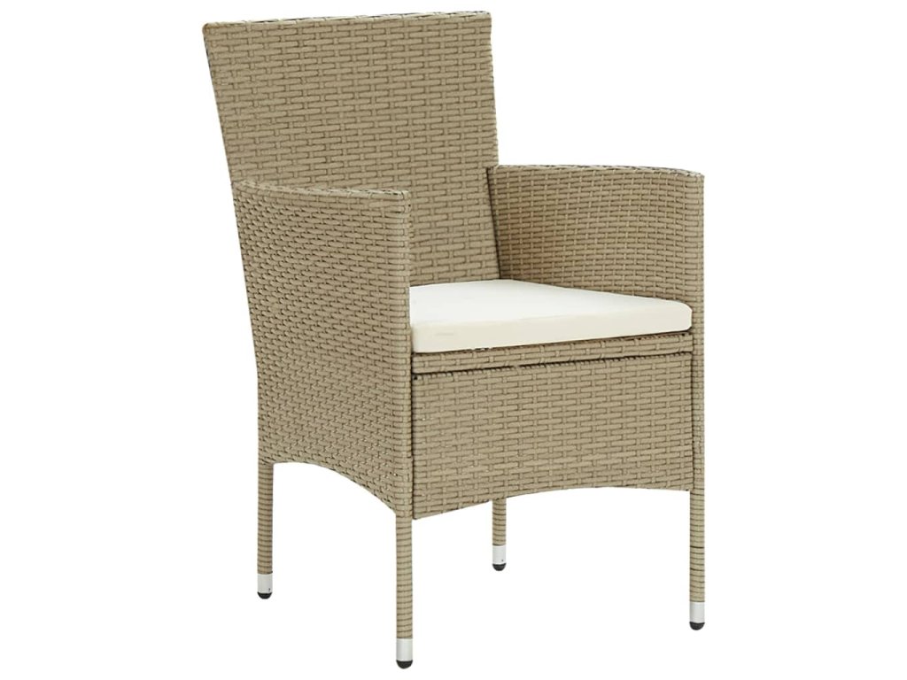Jídelní stůl je vyrobený z masivního akáciového dřeva, takže je pevný a stabilní. Olejem napuštěný povrch umožňuje tento stůl používat i ve venkovních prostorech. Jídelní židle mají ocelový rám, který je opletený klimaticky odolným PE ratanem, jsou proto bytelné a dají se bez námahy udržet v čistotě. Každá židle má hustě polstrovanou podušku, abyste si při odpočinku mohli dopřát mimořádný komfort.
