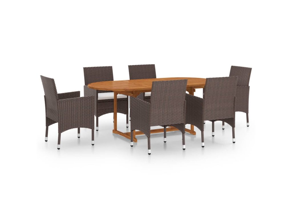 7dílný zahradní jídelní set polyratan hnědý 3070754