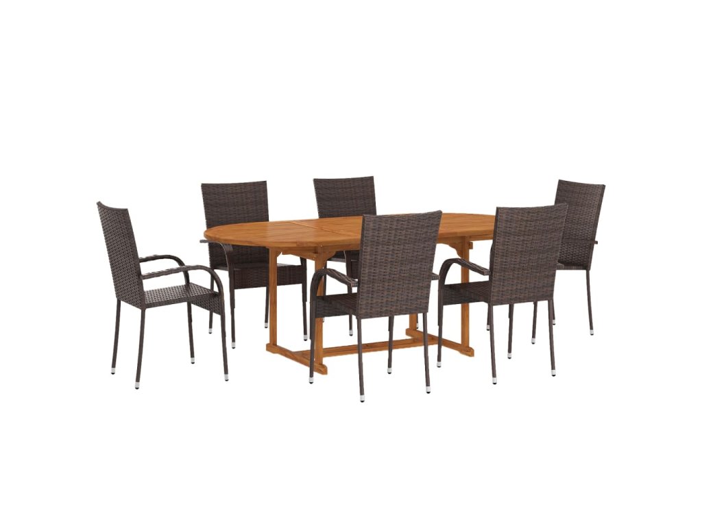 7dílný zahradní jídelní set polyratan hnědý 3070757