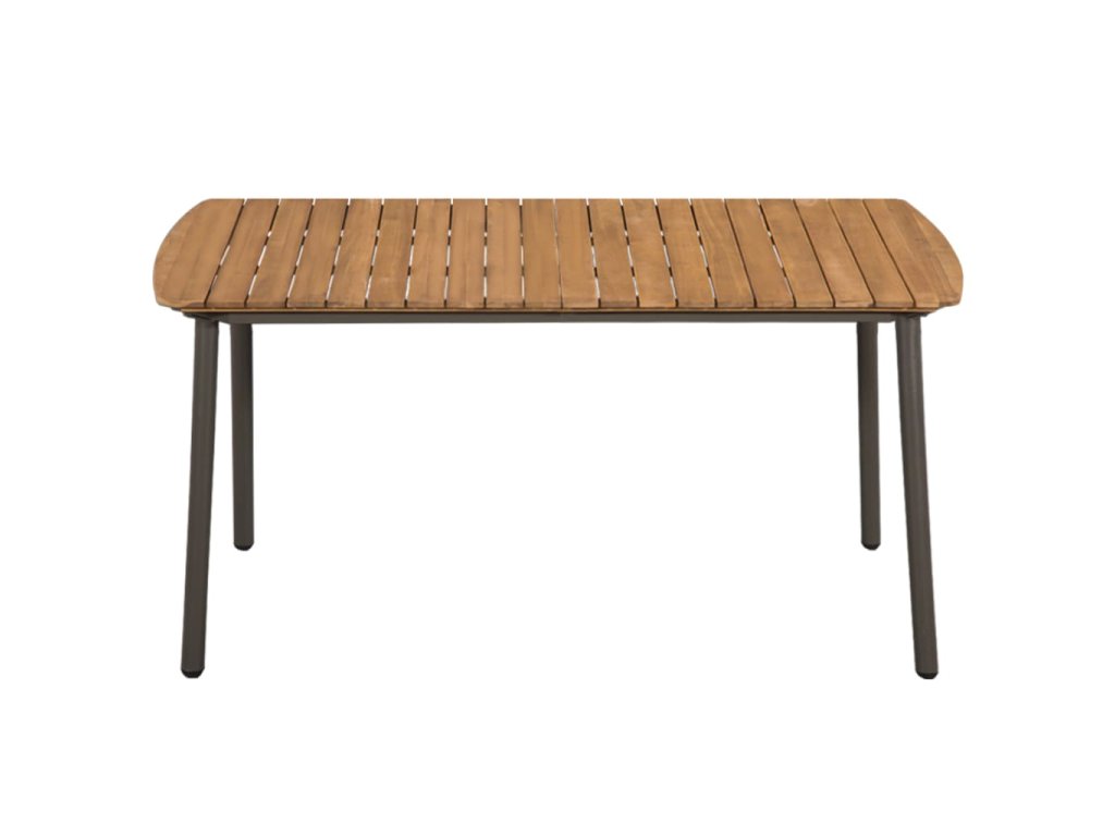 Jídelní stůl je vyrobený z masivního akáciového dřeva a odolné oceli, takže je pevný a stabilní. Olejem napuštěný povrch se hodí i pro venkovní použití. Jídelní židle mají ocelový rám opletený PE ratanem, který výborně vzdoruje klimatickým vlivům, jsou proto robustní a snadno se čistí. Zahradní židle lze stohovat, abyste ušetřili místo, když je zrovna nepoužíváte.