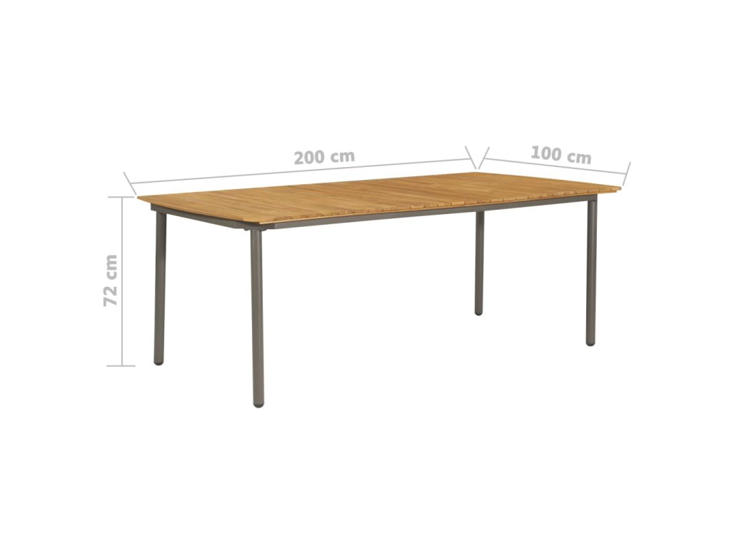 Jídelní stůl je vyrobený z masivního akáciového dřeva a odolné oceli, takže je pevný a stabilní. Olejem napuštěný povrch se hodí i pro venkovní použití. Jídelní židle mají ocelový rám opletený PE ratanem, který výborně vzdoruje klimatickým vlivům, jsou proto robustní a snadno se čistí. Zahradní židle lze stohovat, abyste ušetřili místo, když je zrovna nepoužíváte.