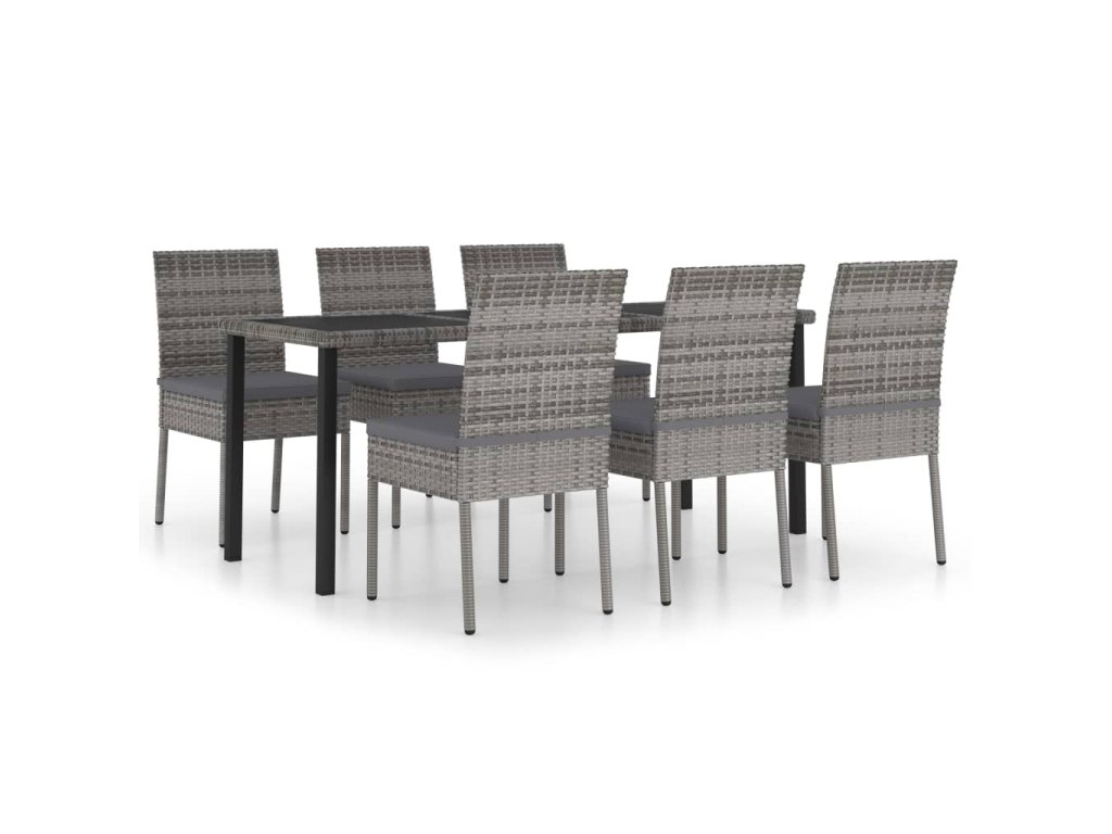 7dílný zahradní jídelní set polyratan šedý 3065703