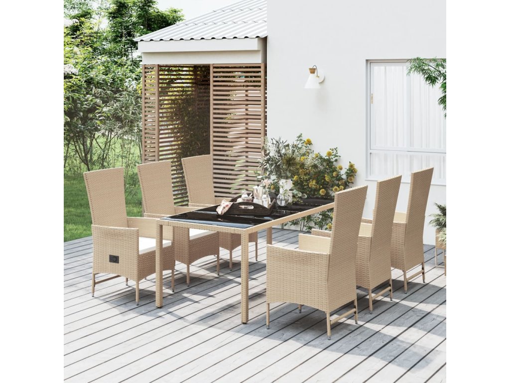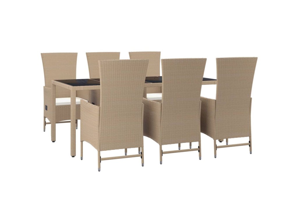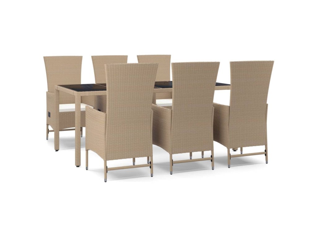 7dílný zahradní jídelní set s poduškami béžový polyratan 3157570