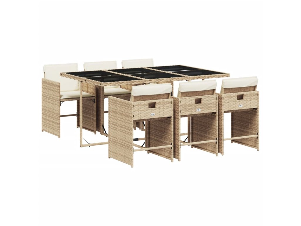 7dílný zahradní jídelní set s poduškami béžový polyratan 3211090