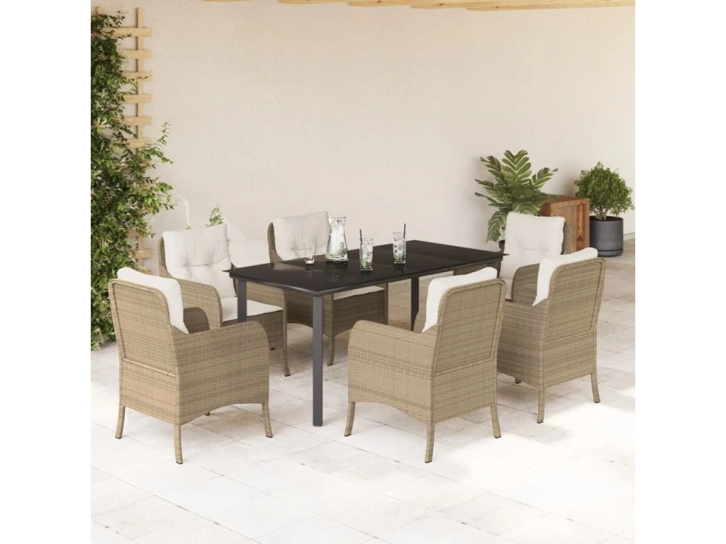 7dílný zahradní jídelní set s poduškami béžový polyratan 3211973