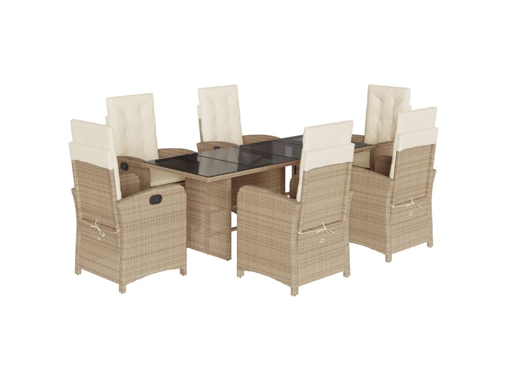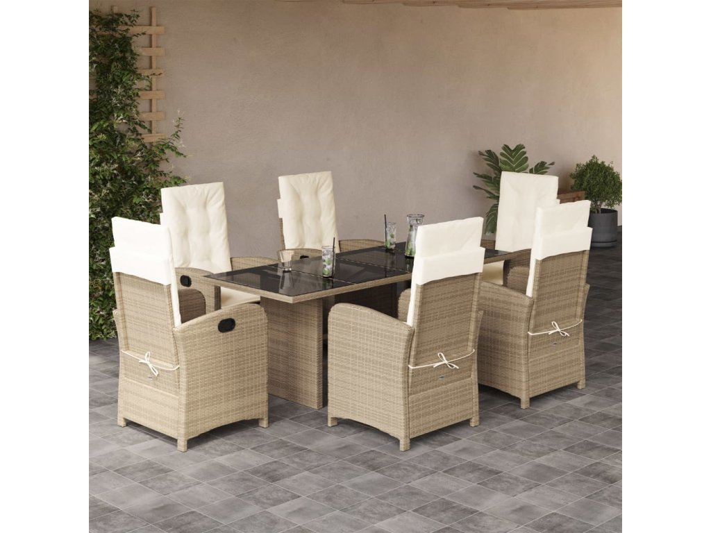 7dílný zahradní jídelní set s poduškami béžový polyratan 3212260