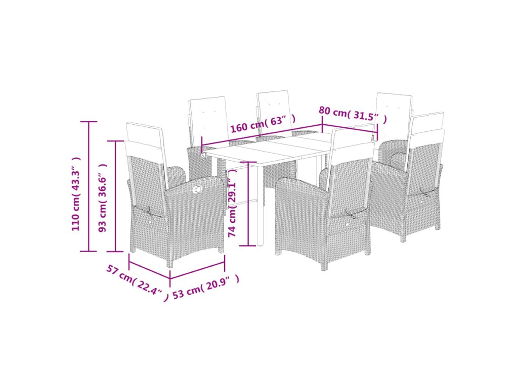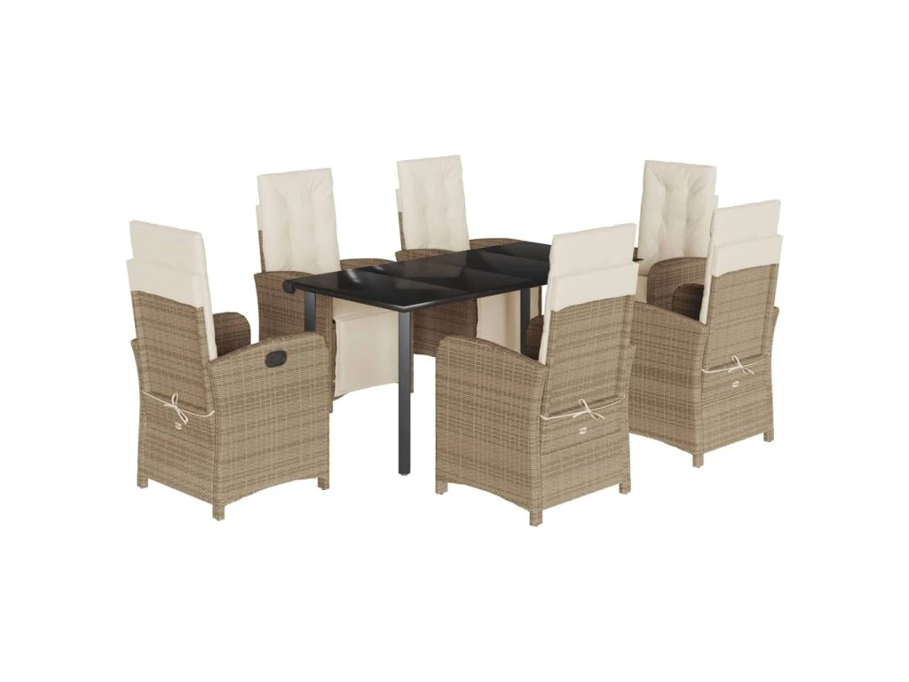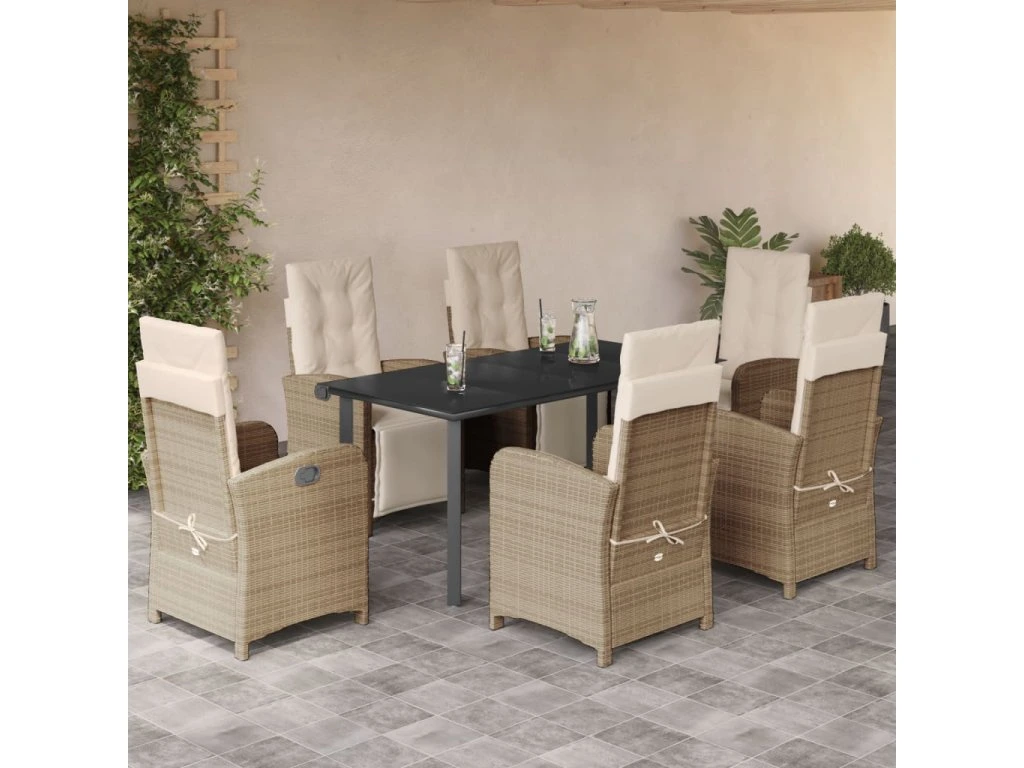 7dílný zahradní jídelní set s poduškami béžový polyratan 3212581