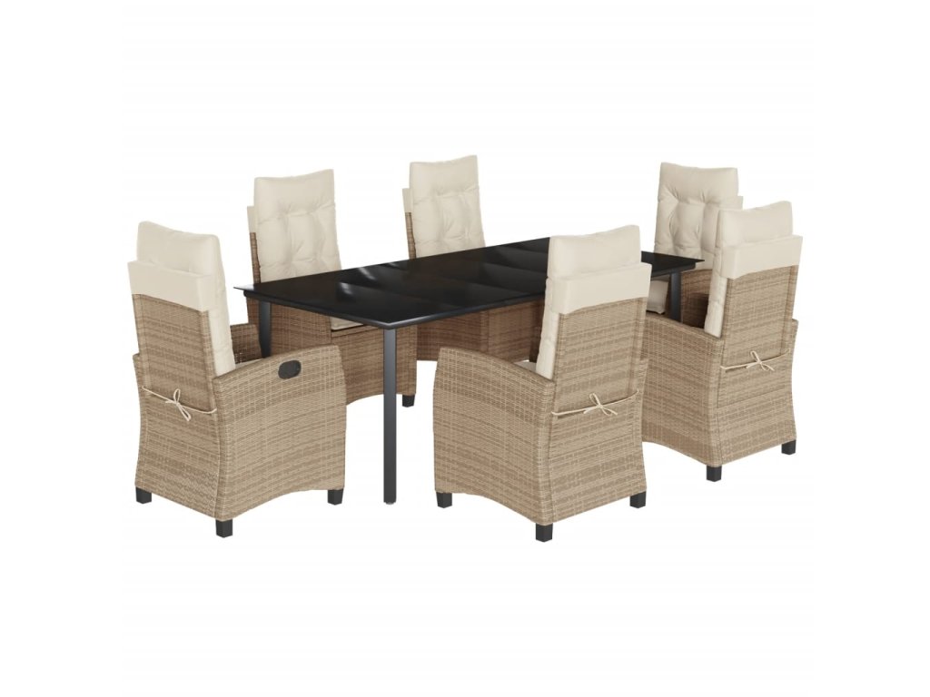 7dílný zahradní jídelní set s poduškami béžový polyratan 3212819