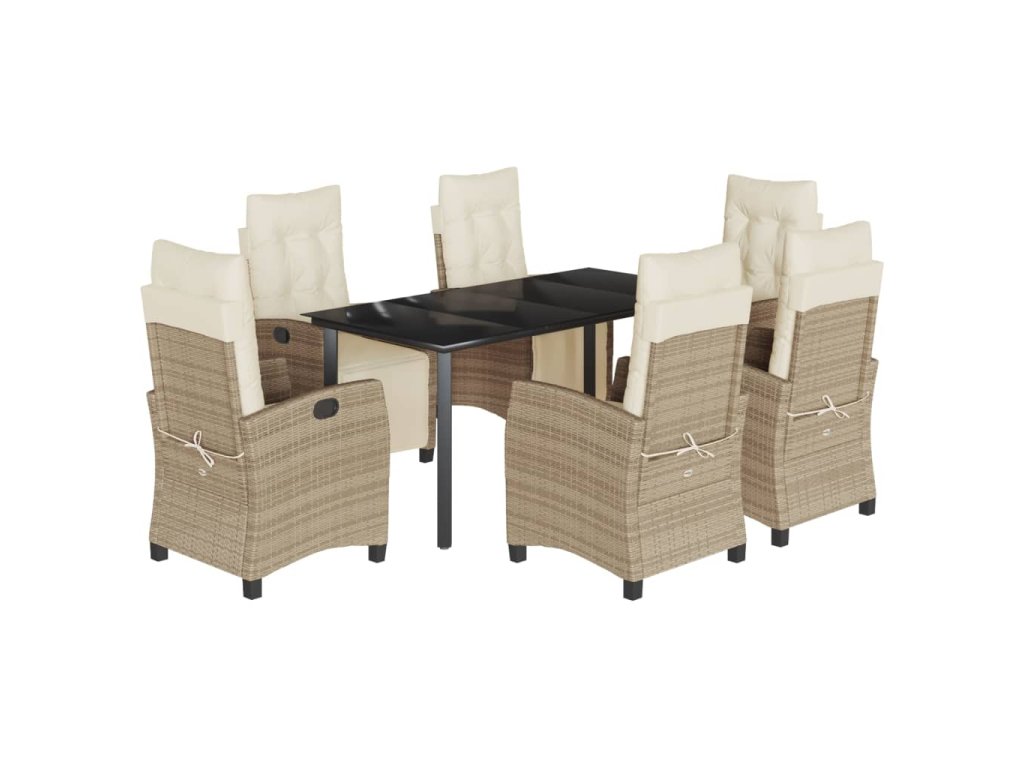 7dílný zahradní jídelní set s poduškami béžový polyratan 3213013