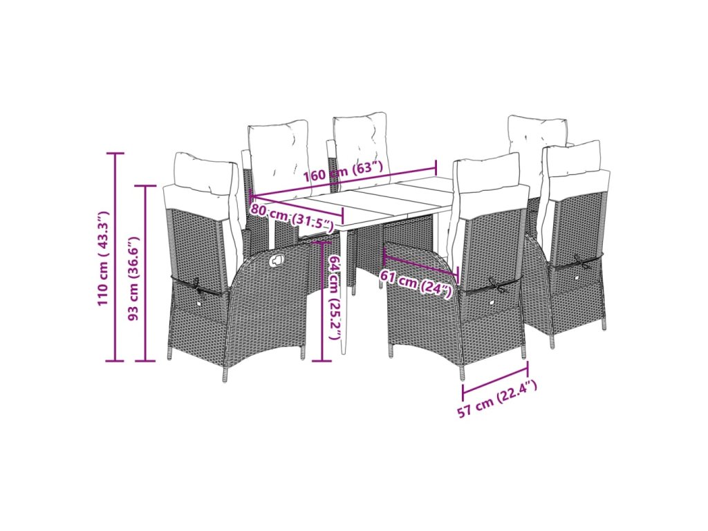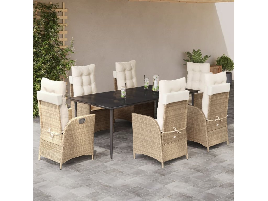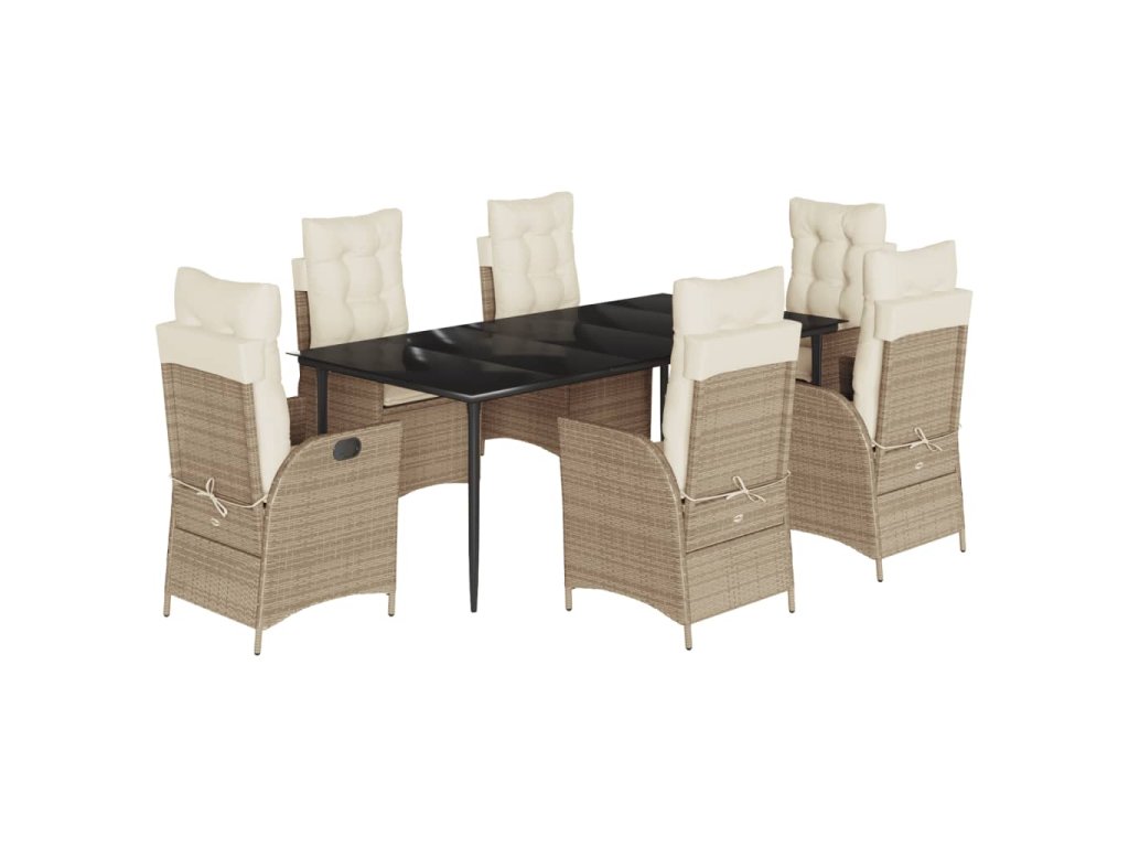 7dílný zahradní jídelní set s poduškami béžový polyratan 3213241