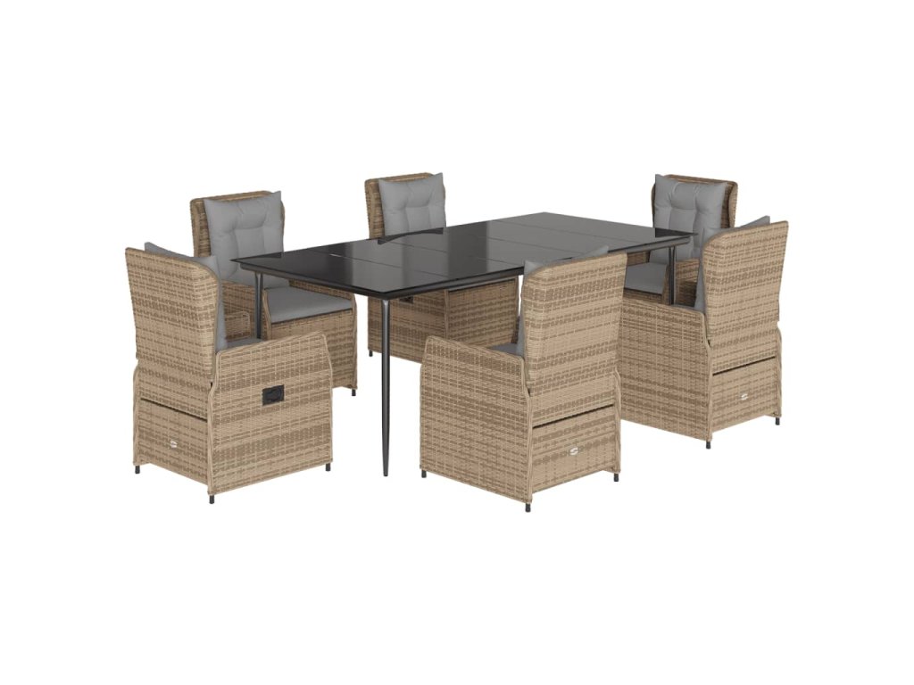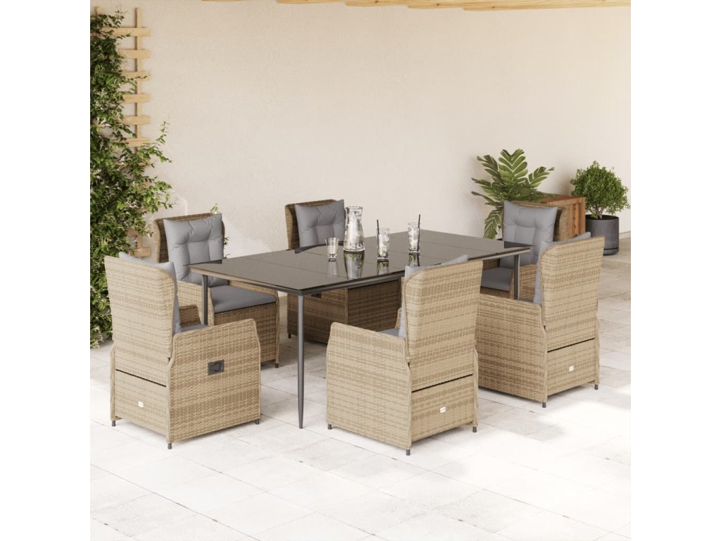 7dílný zahradní jídelní set s poduškami béžový polyratan 3262873