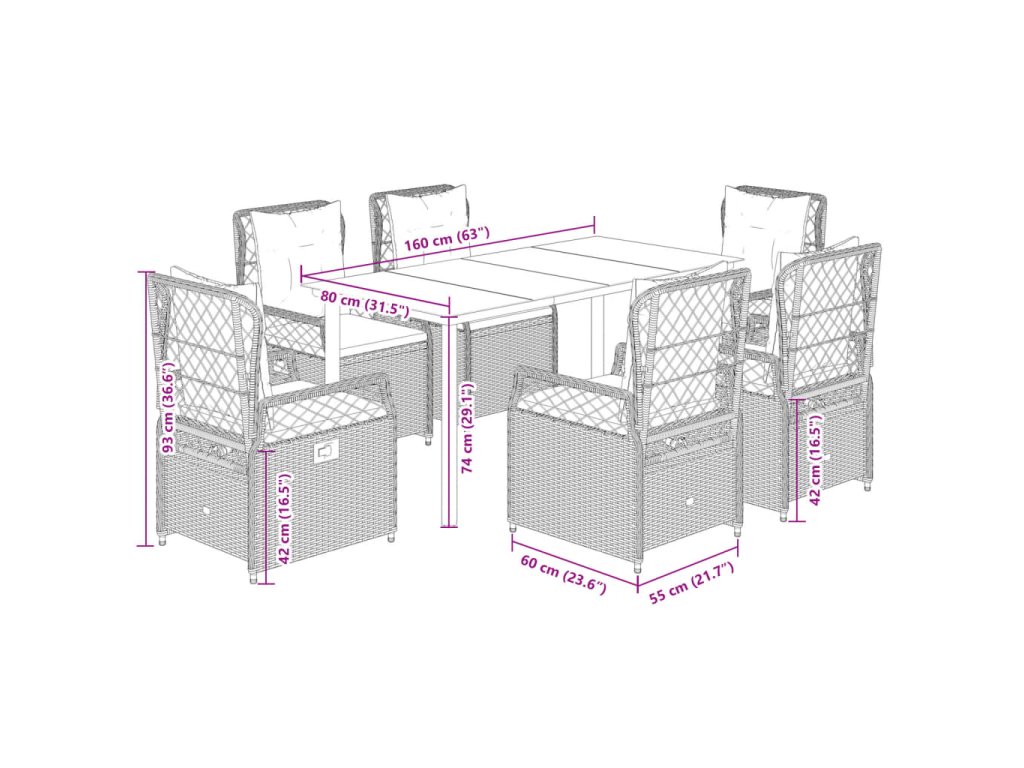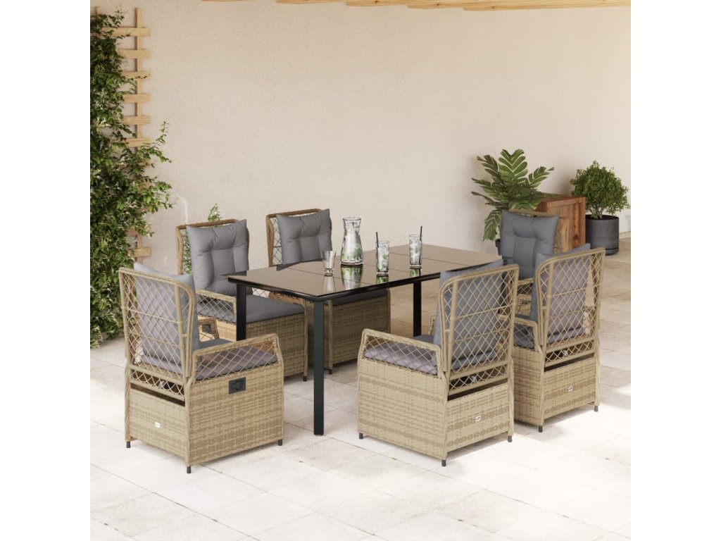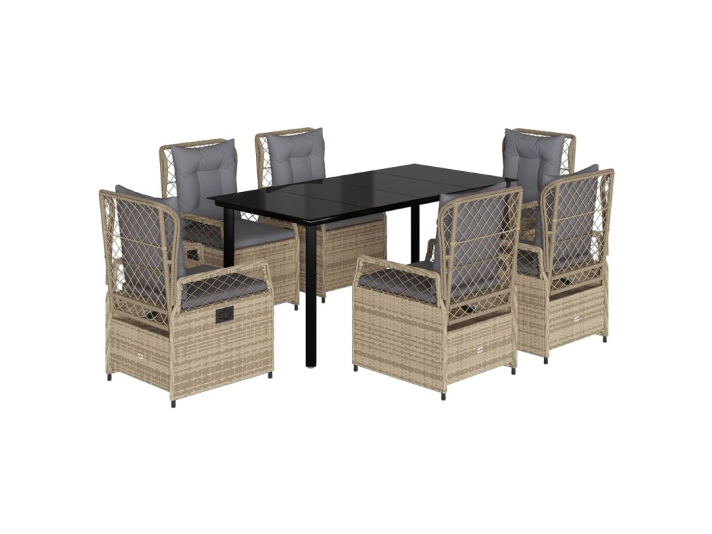 7dílný zahradní jídelní set s poduškami béžový polyratan 3263010
