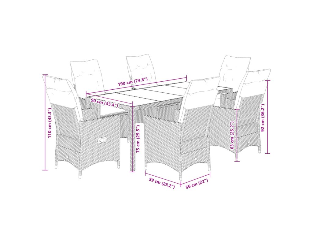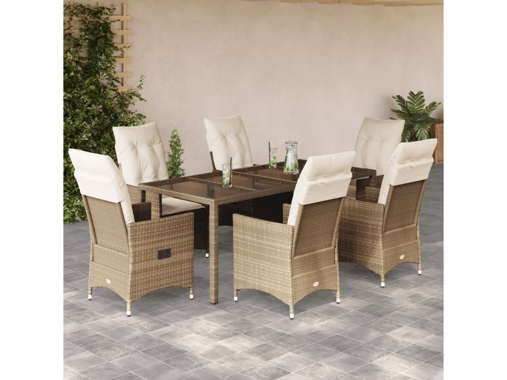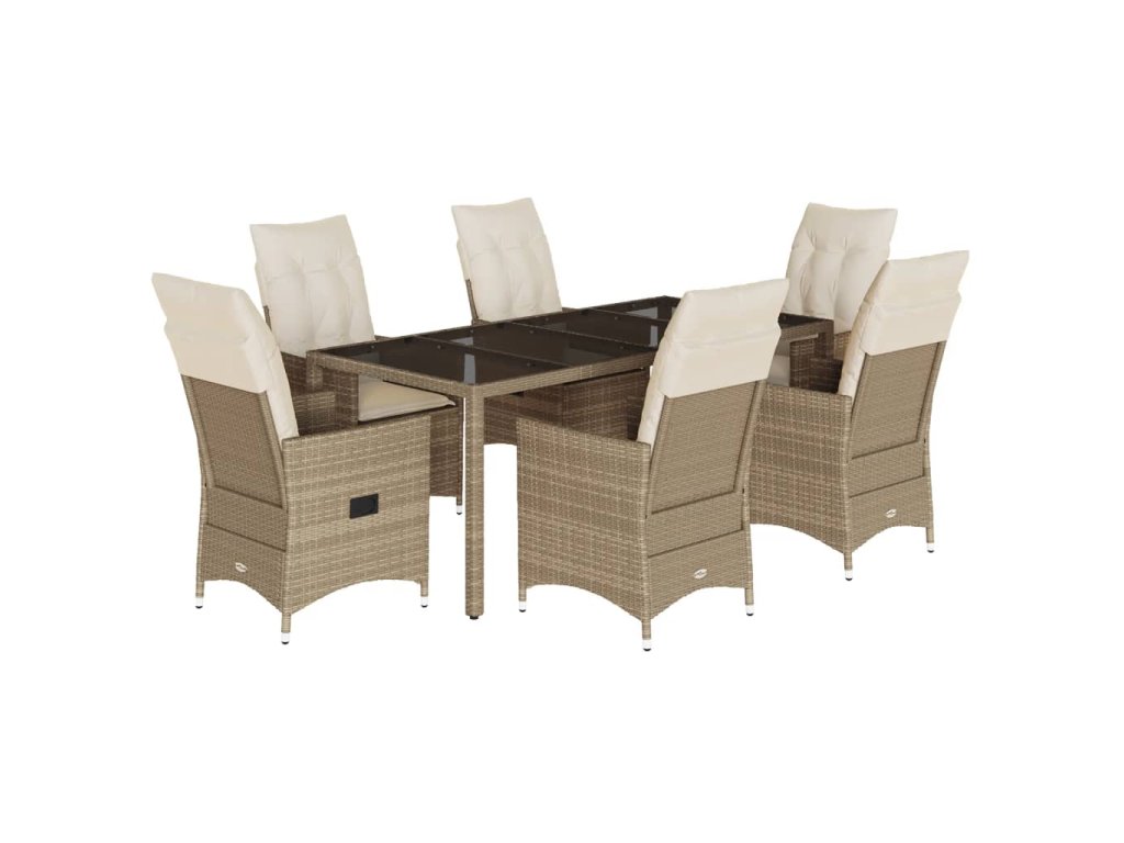 7dílný zahradní jídelní set s poduškami béžový polyratan 3276805
