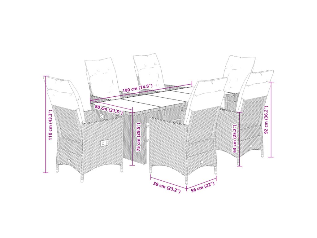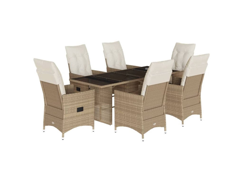 7dílný zahradní jídelní set s poduškami béžový polyratan 3276808