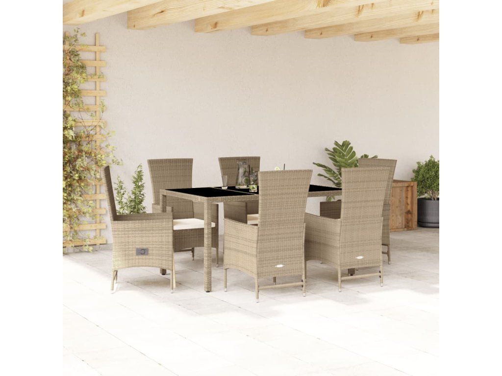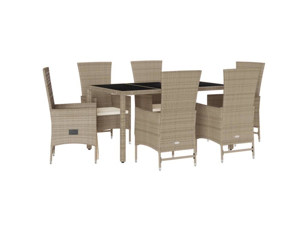 7dílný zahradní jídelní set s poduškami béžový polyratan 3277579