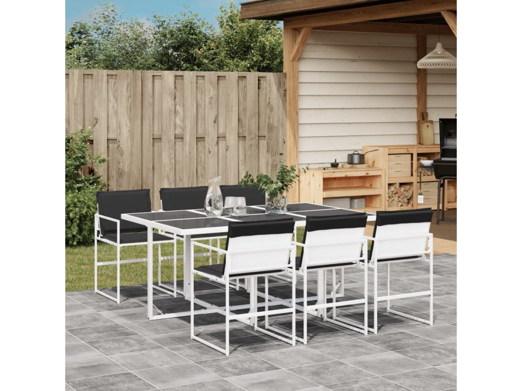 7dílný zahradní jídelní set s poduškami bílý textilen 3295104