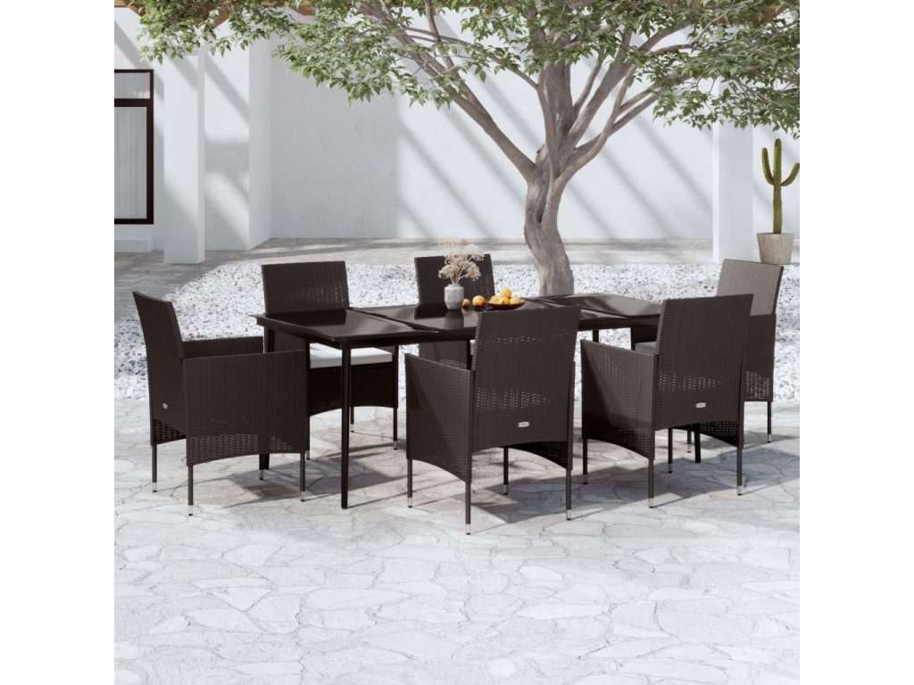 7dílný zahradní jídelní set s poduškami černý 3099309
