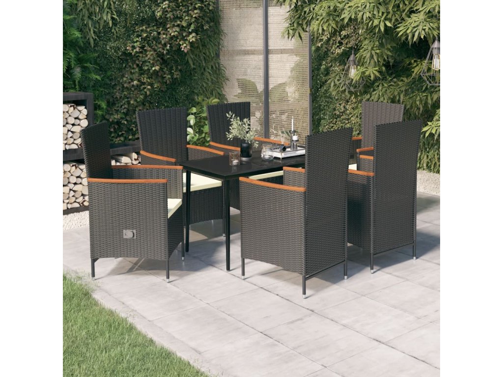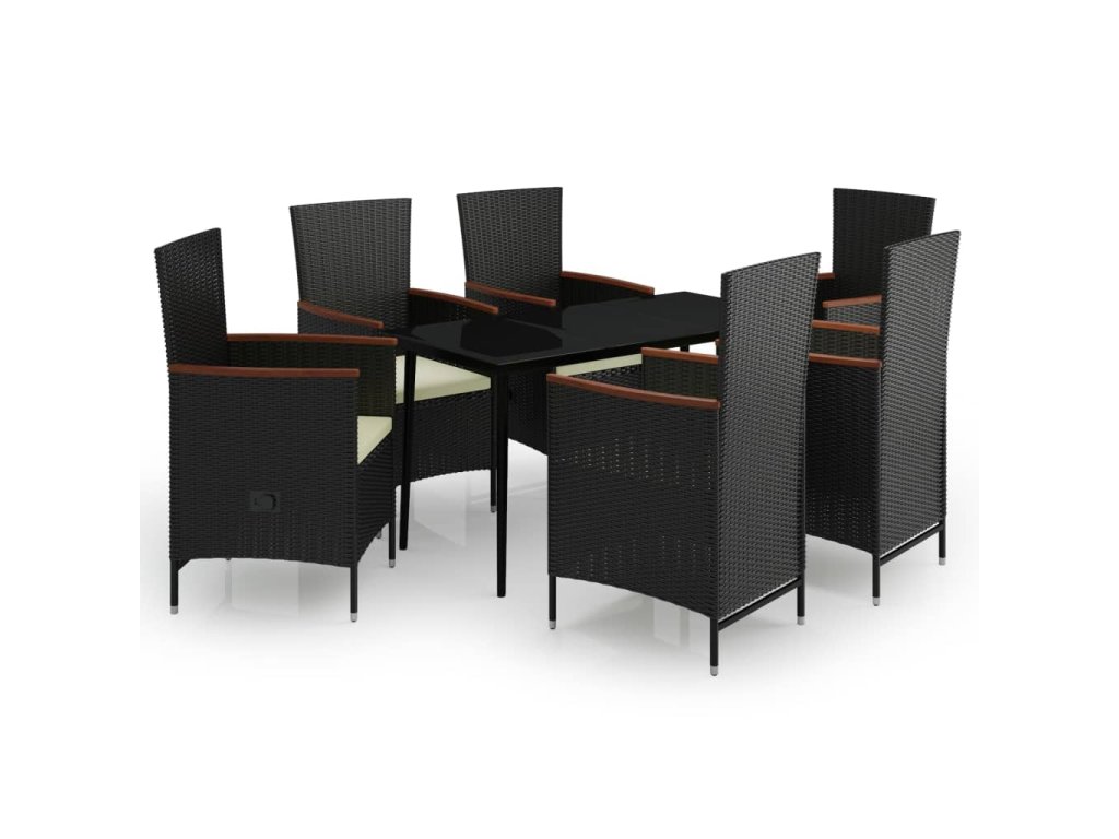 7dílný zahradní jídelní set s poduškami černý 3099446