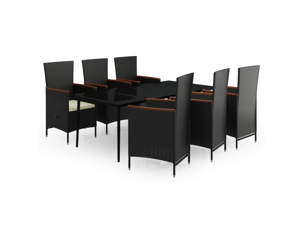 7dílný zahradní jídelní set s poduškami černý 3099447