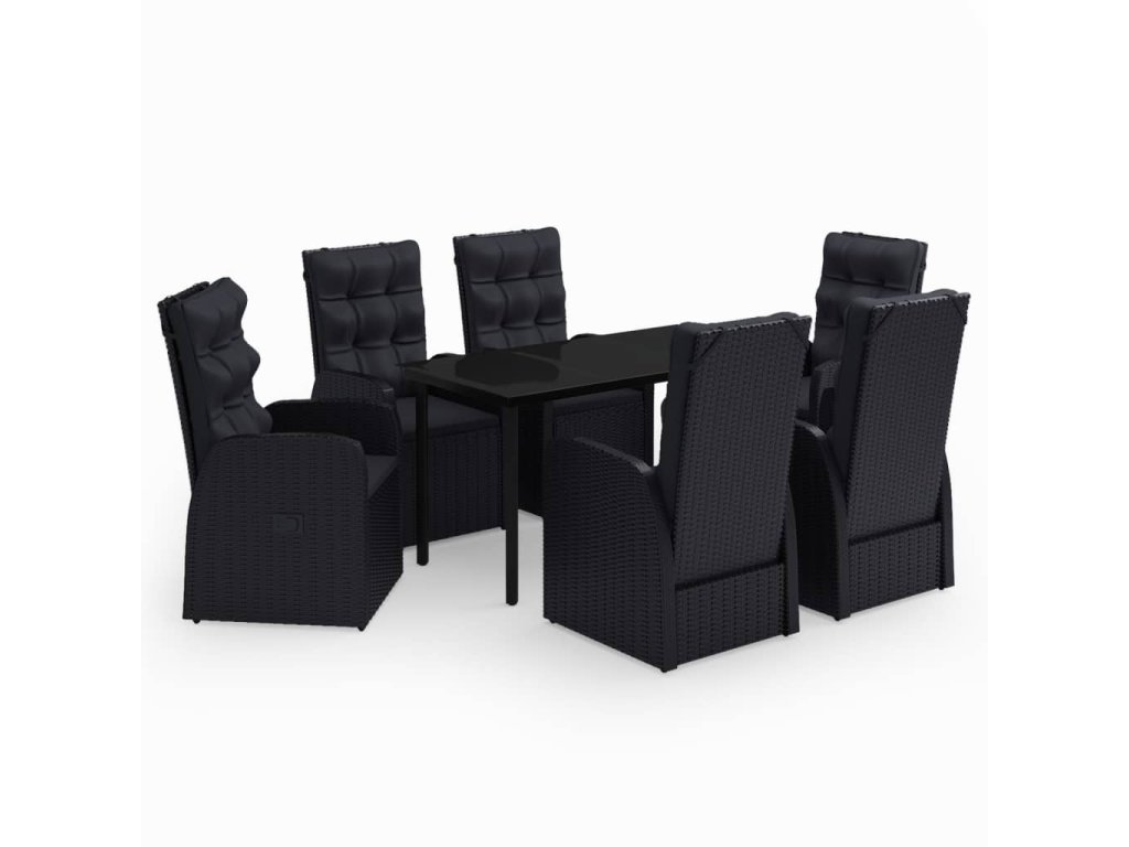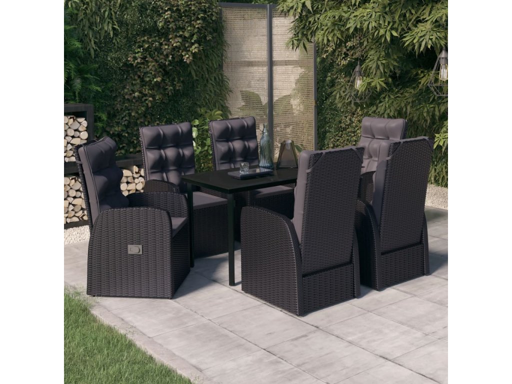 7dílný zahradní jídelní set s poduškami černý 3099482