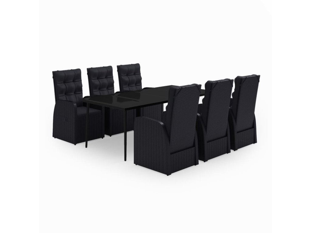 7dílný zahradní jídelní set s poduškami černý 3099495