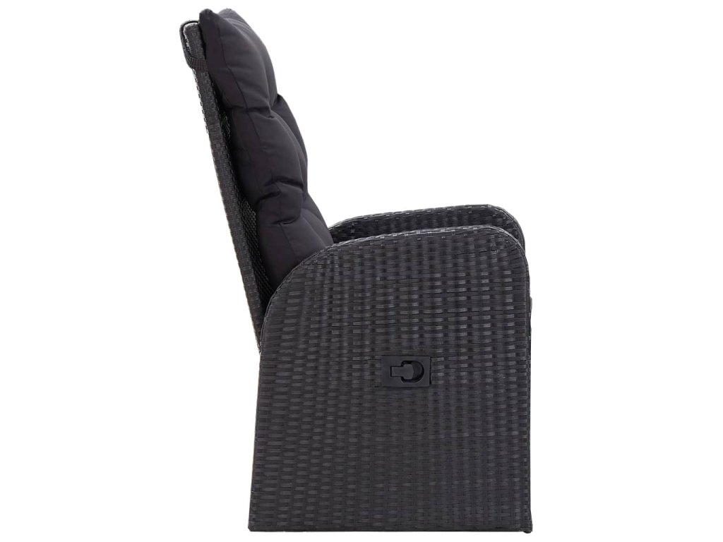 Stůl i židle mají rámy z práškově lakované oceli, jsou tedy robustní, stabilní a vhodné pro každodenní venkovní použití. Židle jsou vyrobené z voděodolného PE ratanu, takže se snadno čistí a hodně toho vydrží. Opěradlo si můžete nastavit stisknutím tlačítka na boku. Nábytek má lehkou konstrukci, lze ho tudíž bez námahy přesouvat. Husté polstrované podušky na sedák vám navíc zajistí mimořádné pohodlí. Jejich polyesterové potahy jsou nenáročné na údržbu a dají se stáhnout a vyprat. Hladká skleněná stolní deska, kterou jednoduše očistíte vlhkým hadříkem, je ideální k podávání jídla a pití nebo k vystavení různých dekorativních předmětů.