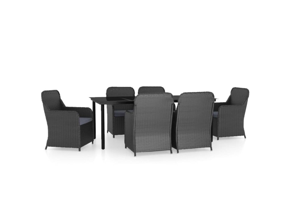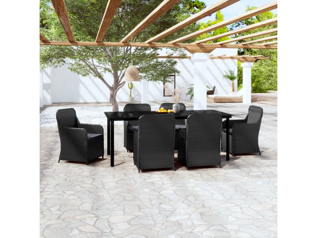 7dílný zahradní jídelní set s poduškami černý 3099533
