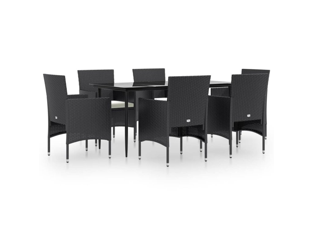 7dílný zahradní jídelní set s poduškami černý 3156617