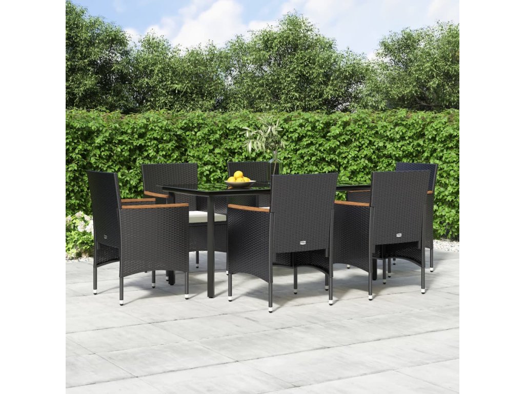 7dílný zahradní jídelní set s poduškami černý 3156633