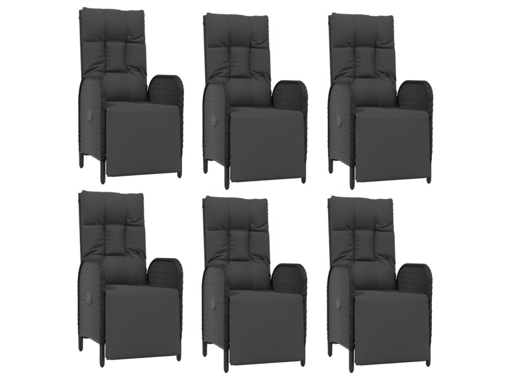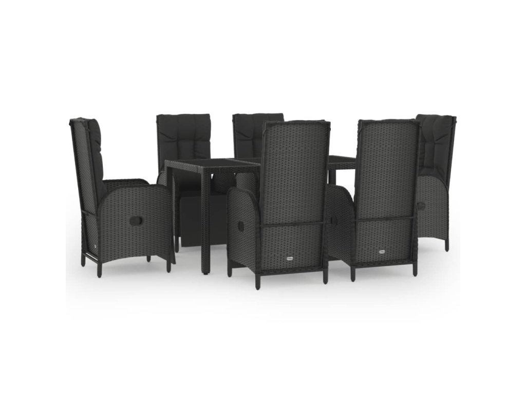 7dílný zahradní jídelní set s poduškami černý a šedý polyratan 3185062