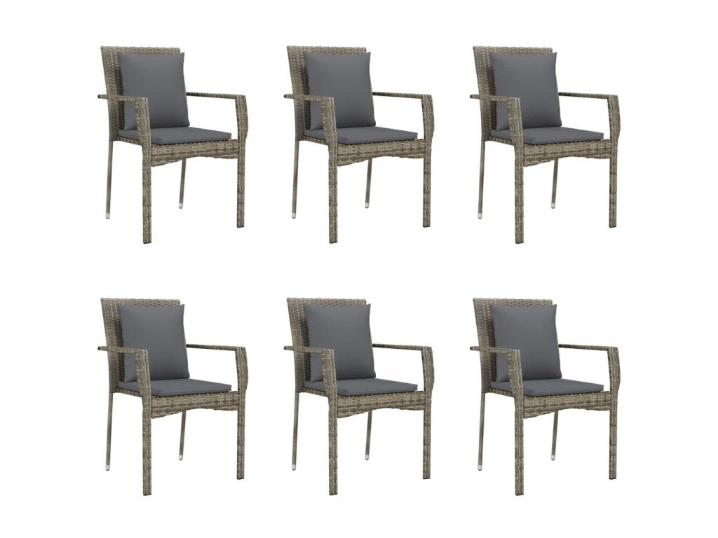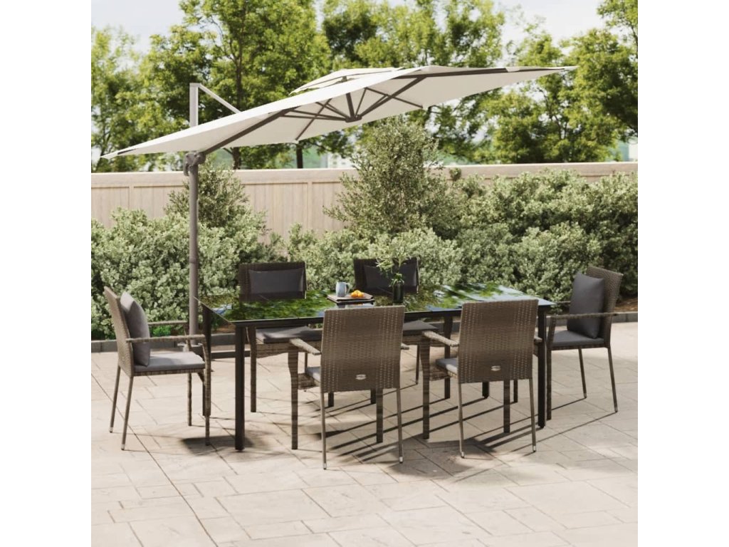 7dílný zahradní jídelní set s poduškami černý a šedý polyratan 3185117