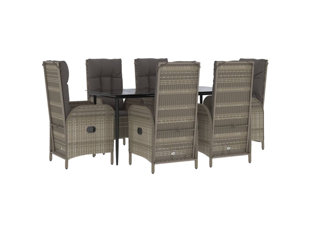 7dílný zahradní jídelní set s poduškami černý a šedý polyratan 3185182