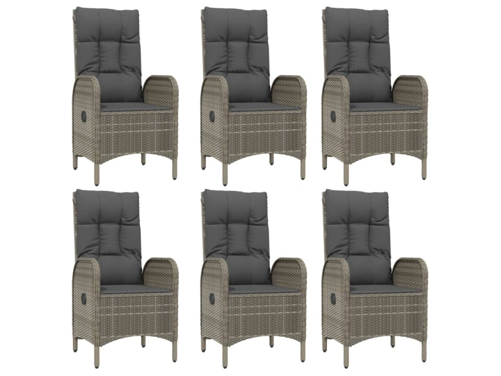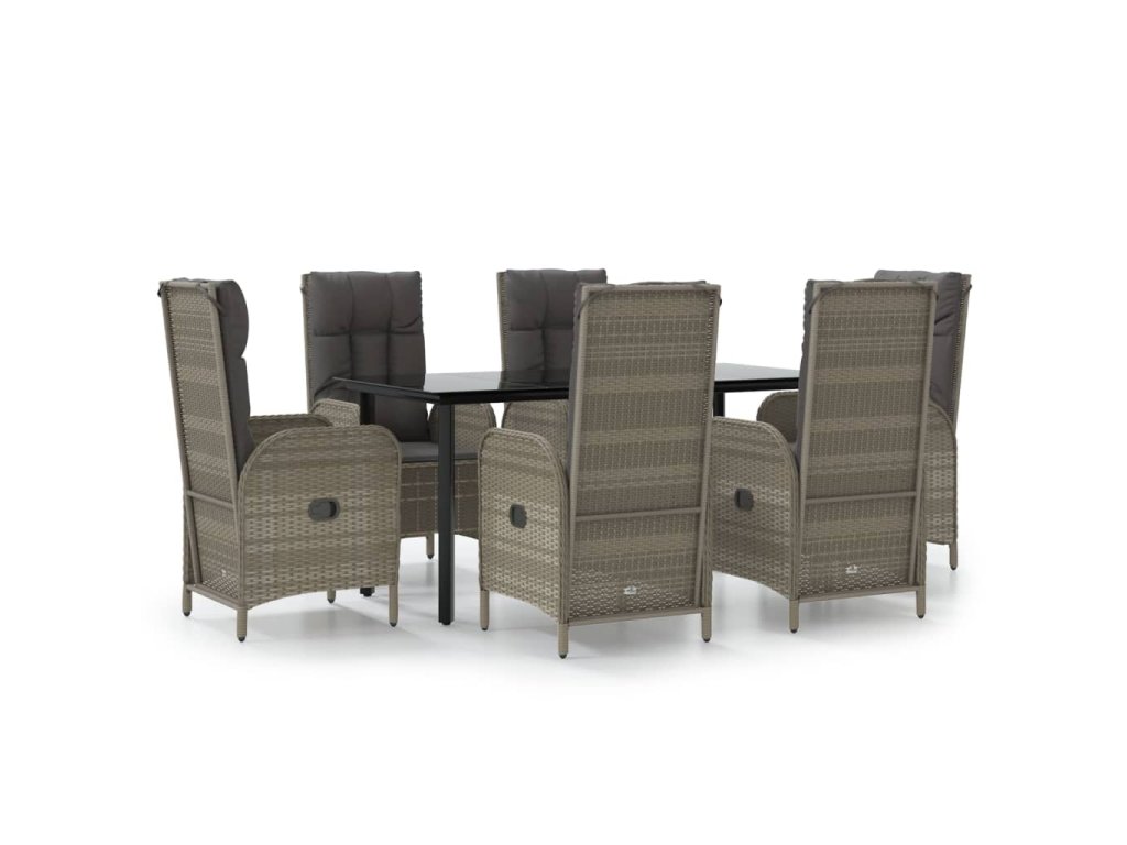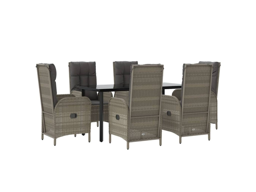 7dílný zahradní jídelní set s poduškami černý a šedý polyratan 3185202