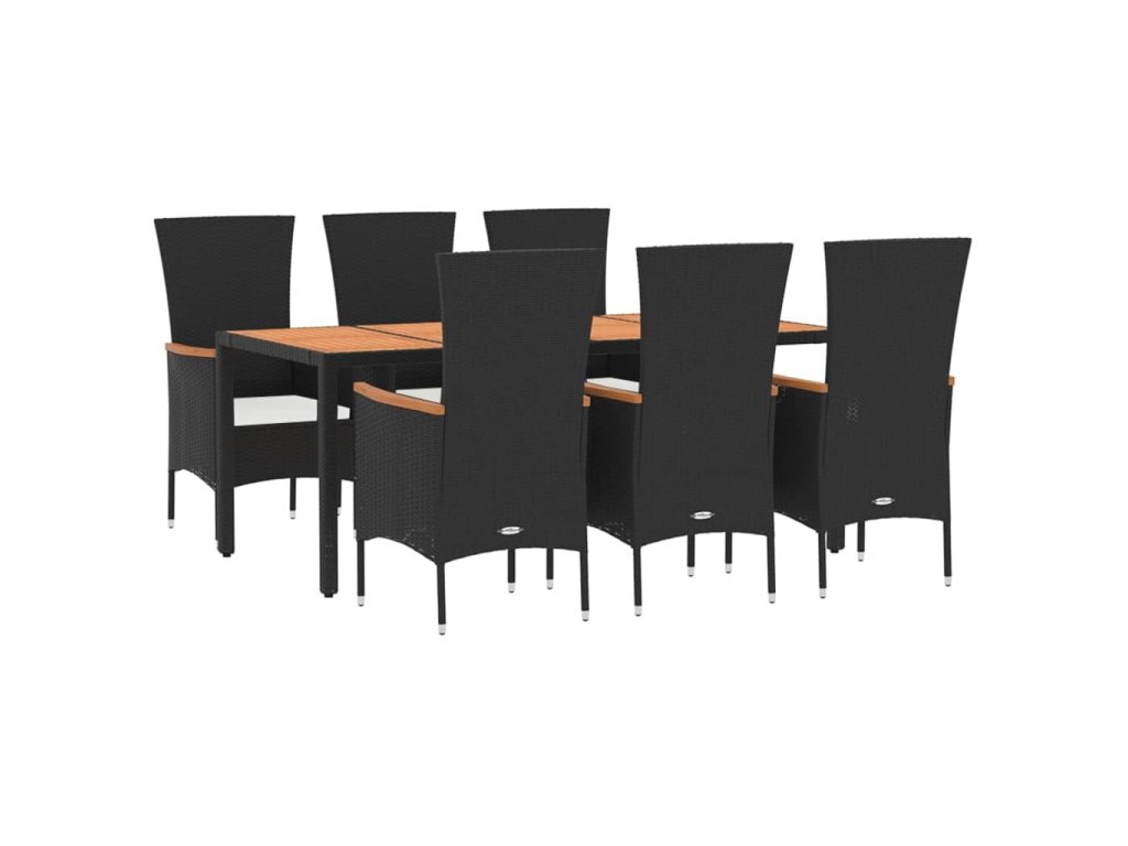 7dílný zahradní jídelní set s poduškami černý polyratan 3157532