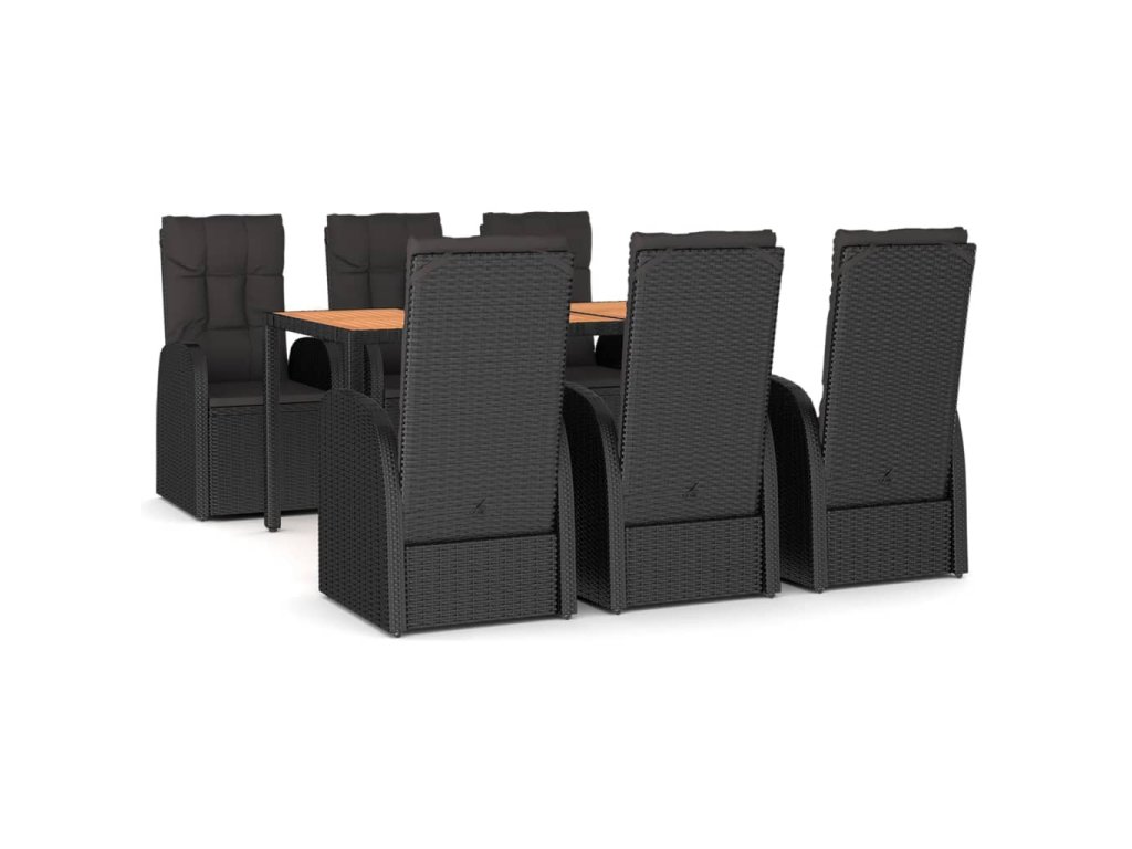 7dílný zahradní jídelní set s poduškami černý polyratan 3157601