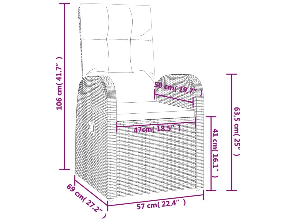 - Rozměry sklopeného křesla: 57 x 106 x 85 cm (Š x H x V)