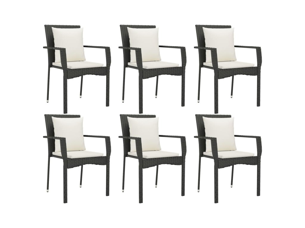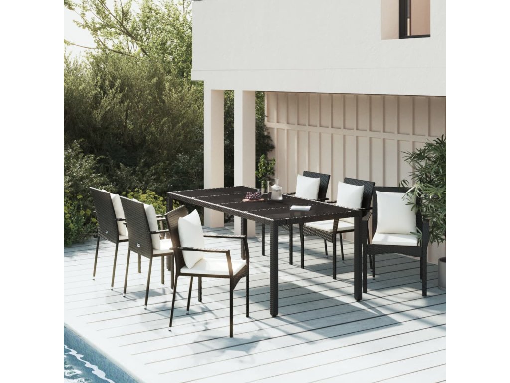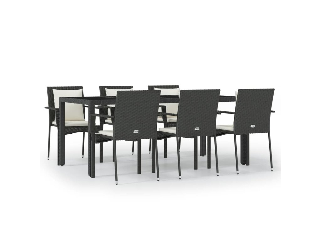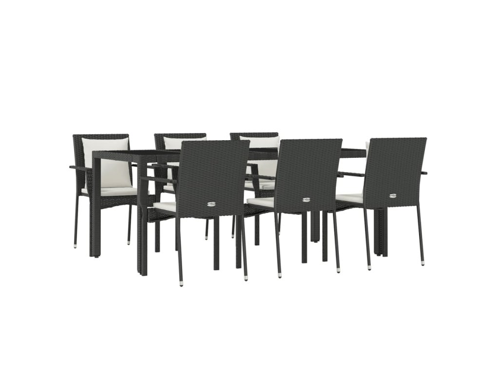 7dílný zahradní jídelní set s poduškami černý polyratan 3157955