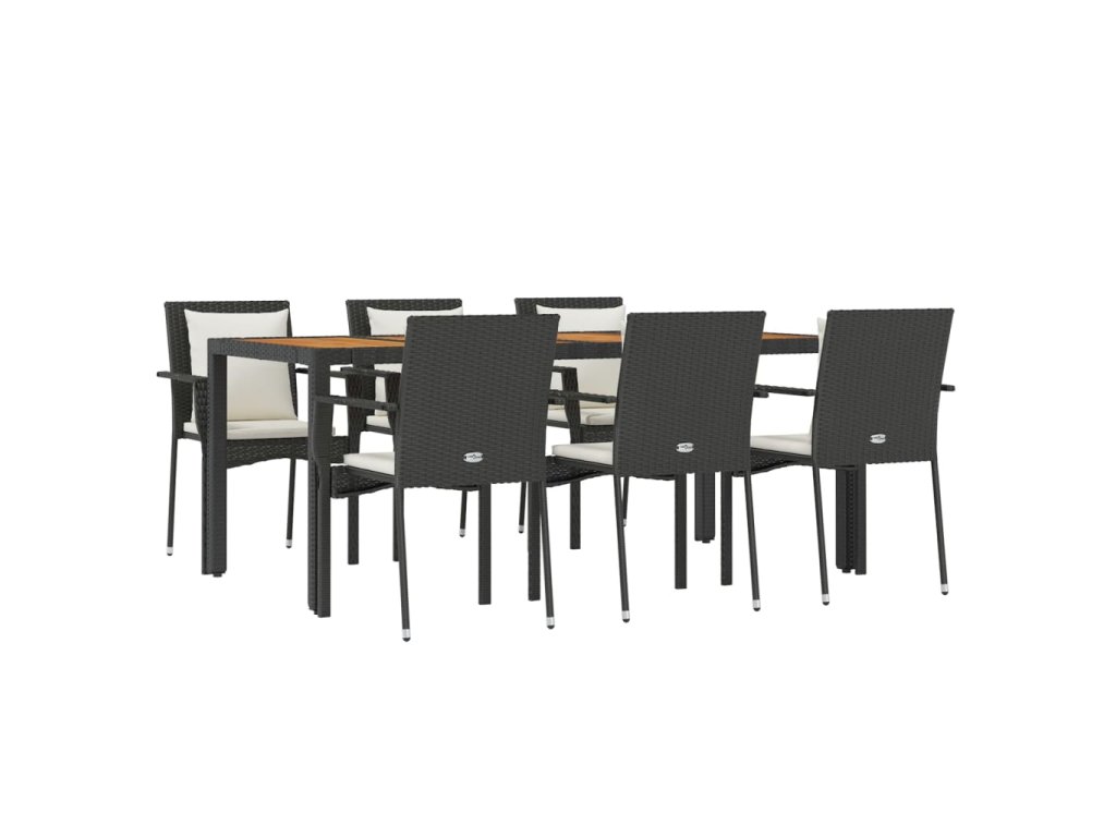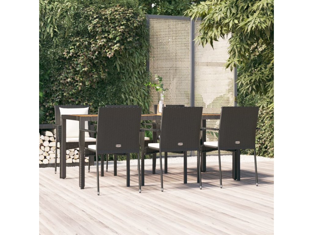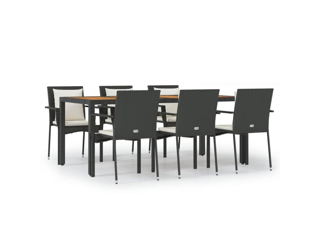 7dílný zahradní jídelní set s poduškami černý polyratan 3157967